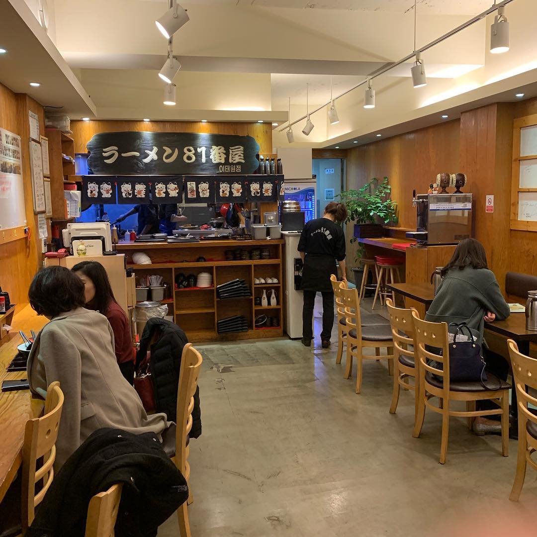 지인의 소개로 간 라멘집 라멘81, 깔끔한 대문과 폭넓은 중앙통로가 전통적인 라멘집과 사뭇 느낌이 다르다. 메뉴판을 보니 돈까스도 팔고, 양이 많은 점보라멘을 다 먹을시 음식값을 받지 않는 이벤트도 활성화되있다.(이벤트 승리자 또한 카운터옆에 전시되있다.) 맛은 특별히 칭찬할것도 불만인것도 없어 누구를 데려가도 평타를 칠 맛이다. 대로변 옆에 있어 눈에 확띠는 곳으로 언제가 근처를 지나갈때 다시 들리고 싶다. 옆에 위치한 패션5 명란바게트도 일품이다.