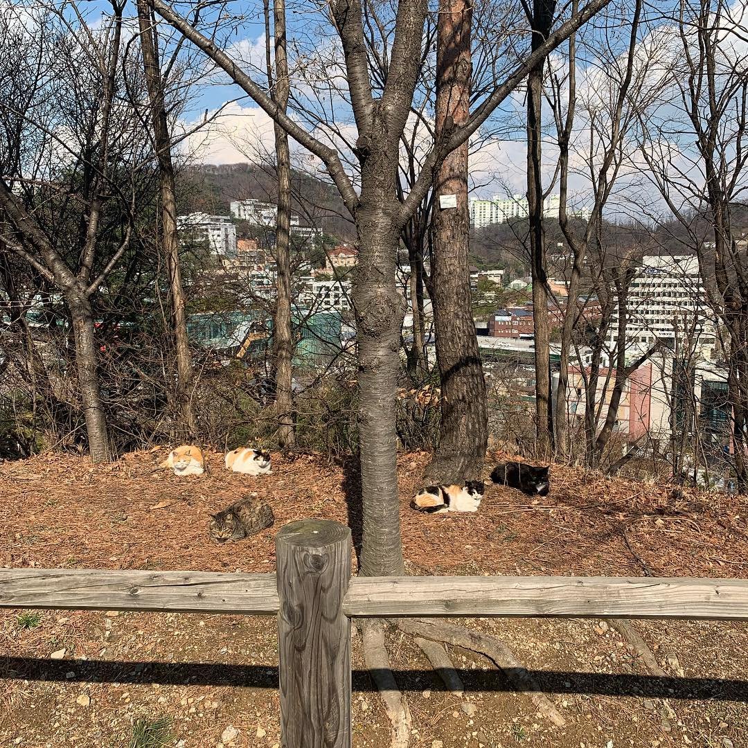 리움미술관옆 남산 산책로에는 고양이 일가족이 산다. 사실 가족이라기엔 모두가 늙어보였고, 뜨거운 태양아래 몸을 누운채 도무지 일어날 기미를 안보였다. 이러쿵 저러쿵 다가가도, 겁을 줘도 마찬가지.. 세상사에 통달한 도인같은 모습.. 암호화폐, 주식, 부동산, 경력, 맛집, 포스팅, 그것이 다 뭐다냐옹? 그저 배부르면 눕고, 따스한 햇빛쬐면 장땡이지~~ 두눈을 감고 표정으로 얘기한다.ㅎㅎ 도도하고 성실하게 서있는 불침번 고양이도 가만보면 반쯤 눈꺼풀이 감겨있다. 놀래키려 다가가는 내가 더 머쓱하다.ㅎㅎ 근데 사진속 고양이는 모두 몇마리일까? 놓칠수 있다. 부끄러말자ㅎㅎ