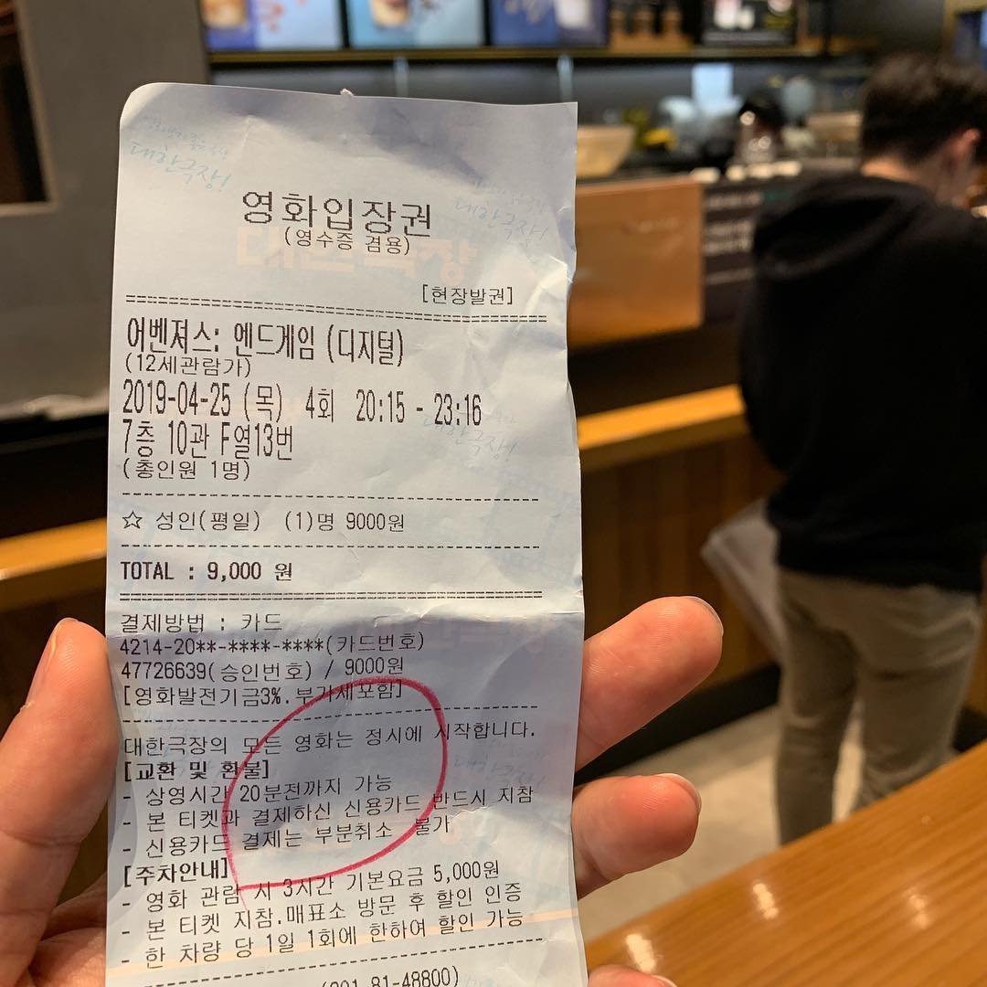 특별히 어벤져스의 광팬이라서라기보다 지난 10년간 전세계를 열광시킨 할리우드 대표 히어로물 어벤져스의 마지막 작품이라~ 어차피 볼거면 하루하루 스포일 당하기 전에 빨리 보자는 마음이 앞섰다. 오늘 아침에도 엔드게임의 스토리는 사무실 곳곳에서 언급되었고, 심지어 탑승한 엘레베이터안에서 타사 인물로부터 스포일을 당할뻔 했다.. 그의 배려심이 조금만 부족해 도중에 말을 멈추지 않았다면.. ㅠㅜ 참 상상하기도 싫다!ㅎㅎ